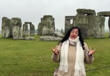 Analía en el milenario anillo de piedra de Stonehenge