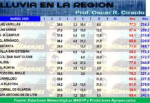 Lluvia caída hasta la madrugada del lunes 9 de marzo