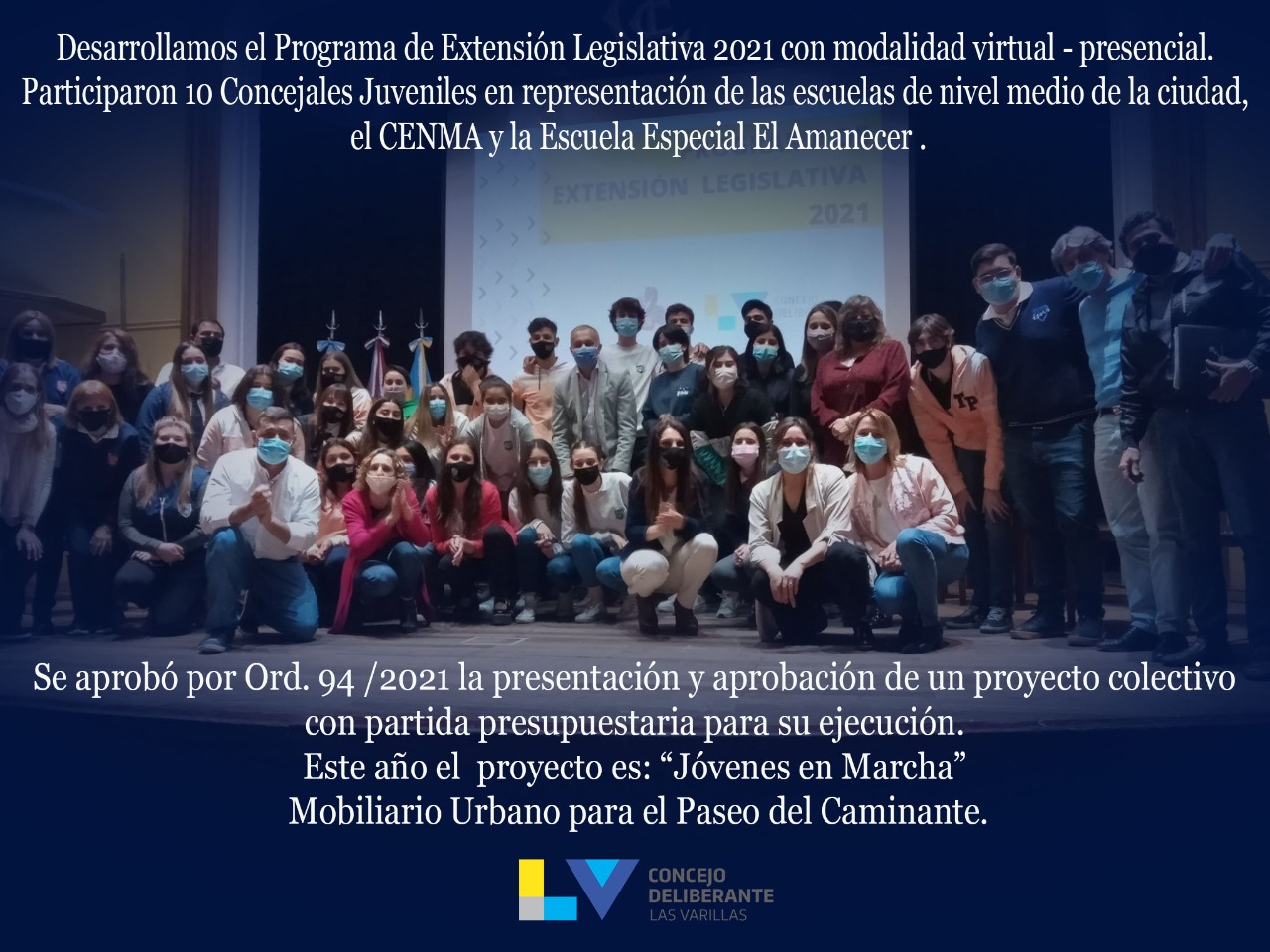 👉 Se aprobó por Ord. 94/2021 la realización de un proyecto colectivo por parte de los participantes de cada PEL que cuenta con partida presupuestaria para su ejecución. Durante el 2021 el proyecto presentado fue “Jóvenes en Marcha. Mobiliario Urbano para el Paseo del Caminante”.
