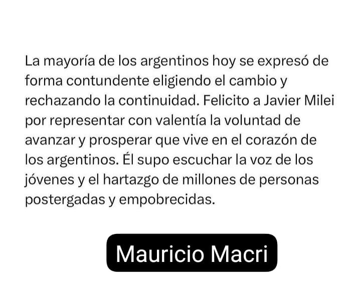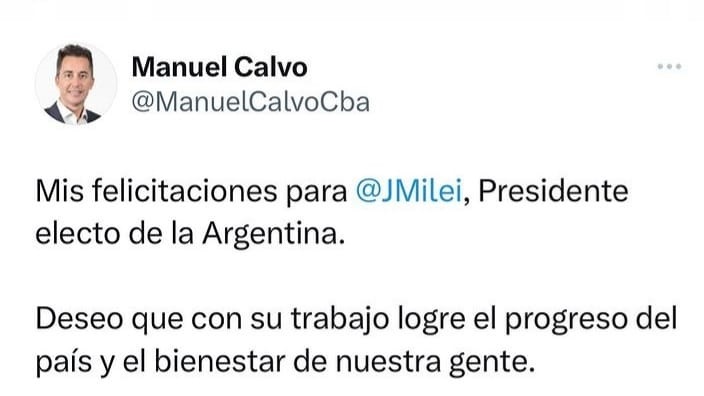 Apenas conocido el triunfo de Javier Milei, dirigentes del país y el mundo saludaron al presidente electo a través de las redes sociales: