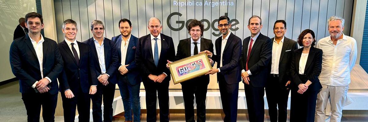 Javier Milei y su delegación junto a Sundar Pichai, CEO de GoogleCuando el presidente concluía su análisis geopolítico, y avanzaba en la agenda propia de la Argentina, Caputo se sumaba a los comentarios de Milei. El ministro de Economía describió la herencia de la inflación “mayorista del 17 mil por ciento anual” y como fue reducida “al 3% mensual con balance del déficit fiscal”.