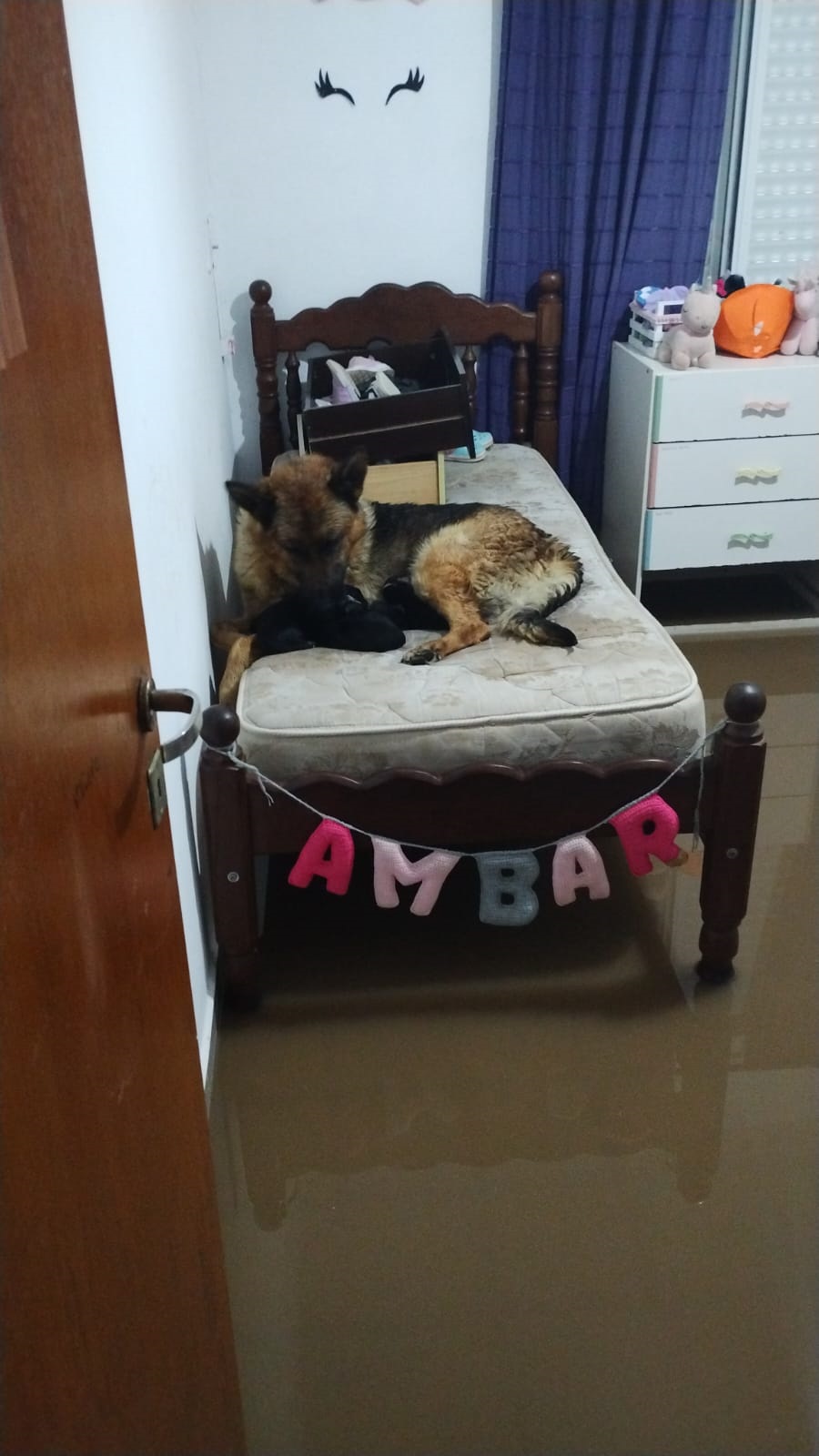 Un párrafo aparte para la Sam y sus cachorritos de tres días, que también necesitaron de la ayuda de la familia en medio de la emergencia.