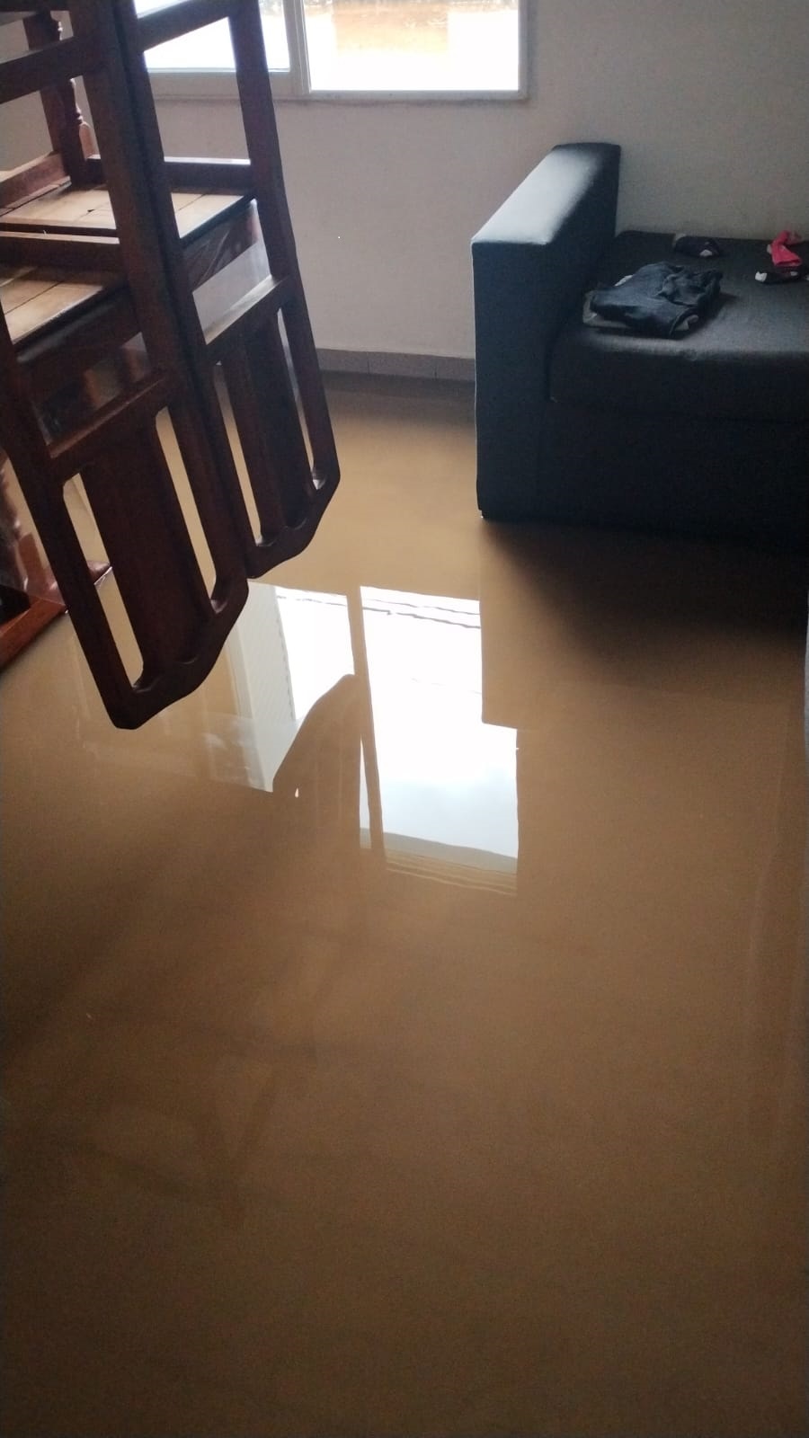 Oscar y Triana, una joven pareja de la calle Pasteur recibieron la ayuda de Bomberos Voluntarios para el traslado de las niñas de 3 y 4 años y para la colocación de bolsas de arena para frenar el ingreso de agua en caso de nuevas precipitaciones.