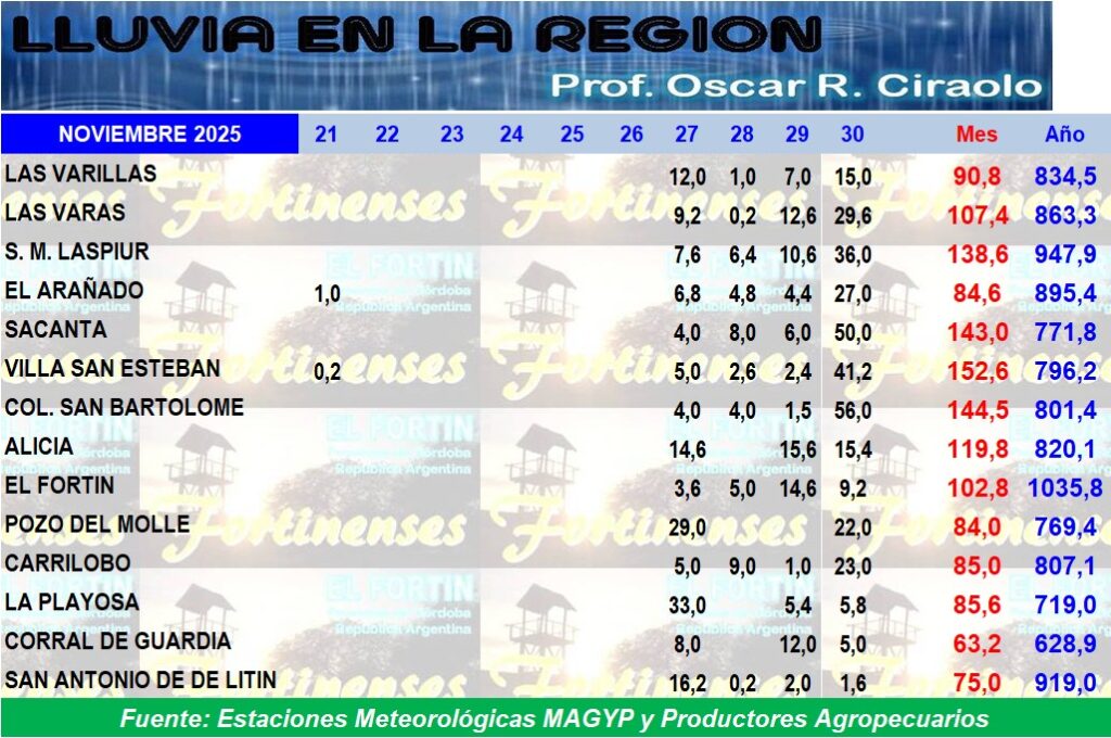 Datos de la lluvia caída en la región