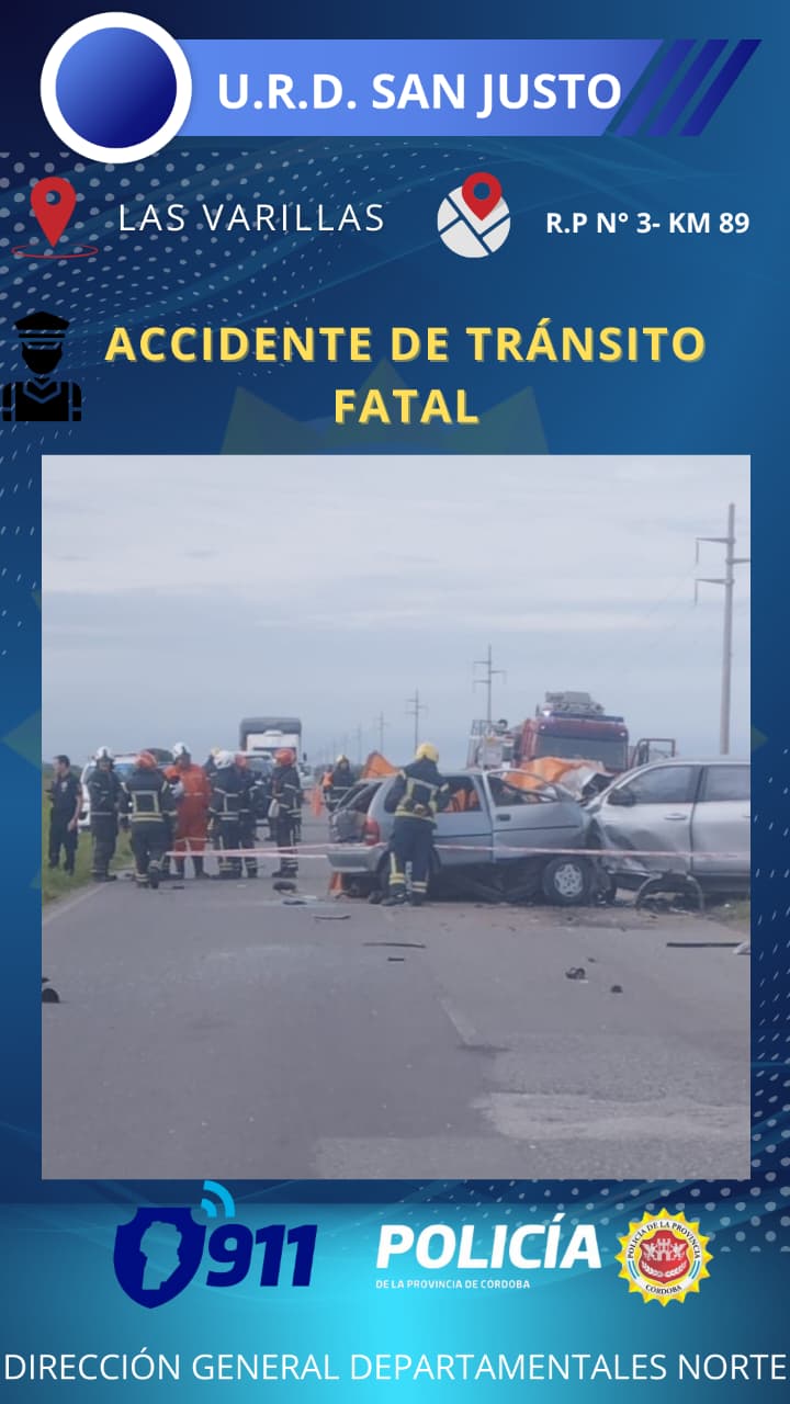 En horas de la mañana, Personal policial de Las Varillas se constituyó en Ruta Provincial n° 3 Km 89, donde observa sobre la calzada dos vehículos con daños de consideración tras colisión frontal.