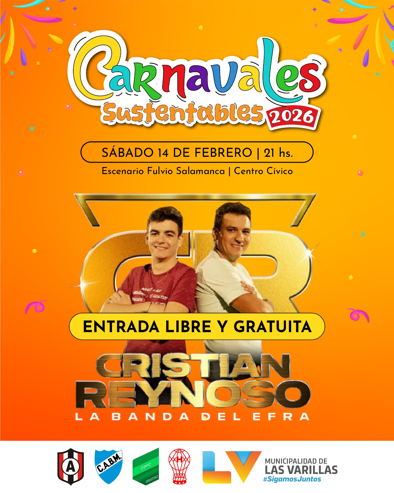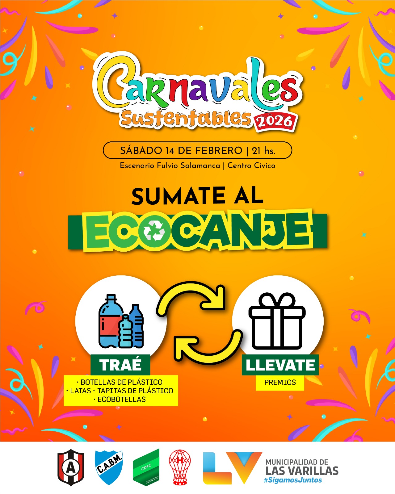 La Municipalidad de Las Varillas invita a toda la comunidad y a los vecinos de la región a participar de una nueva edición de los Carnavales Sustentables 2026, un evento que combina la alegría del carnaval con el compromiso ambiental y la solidaridad.